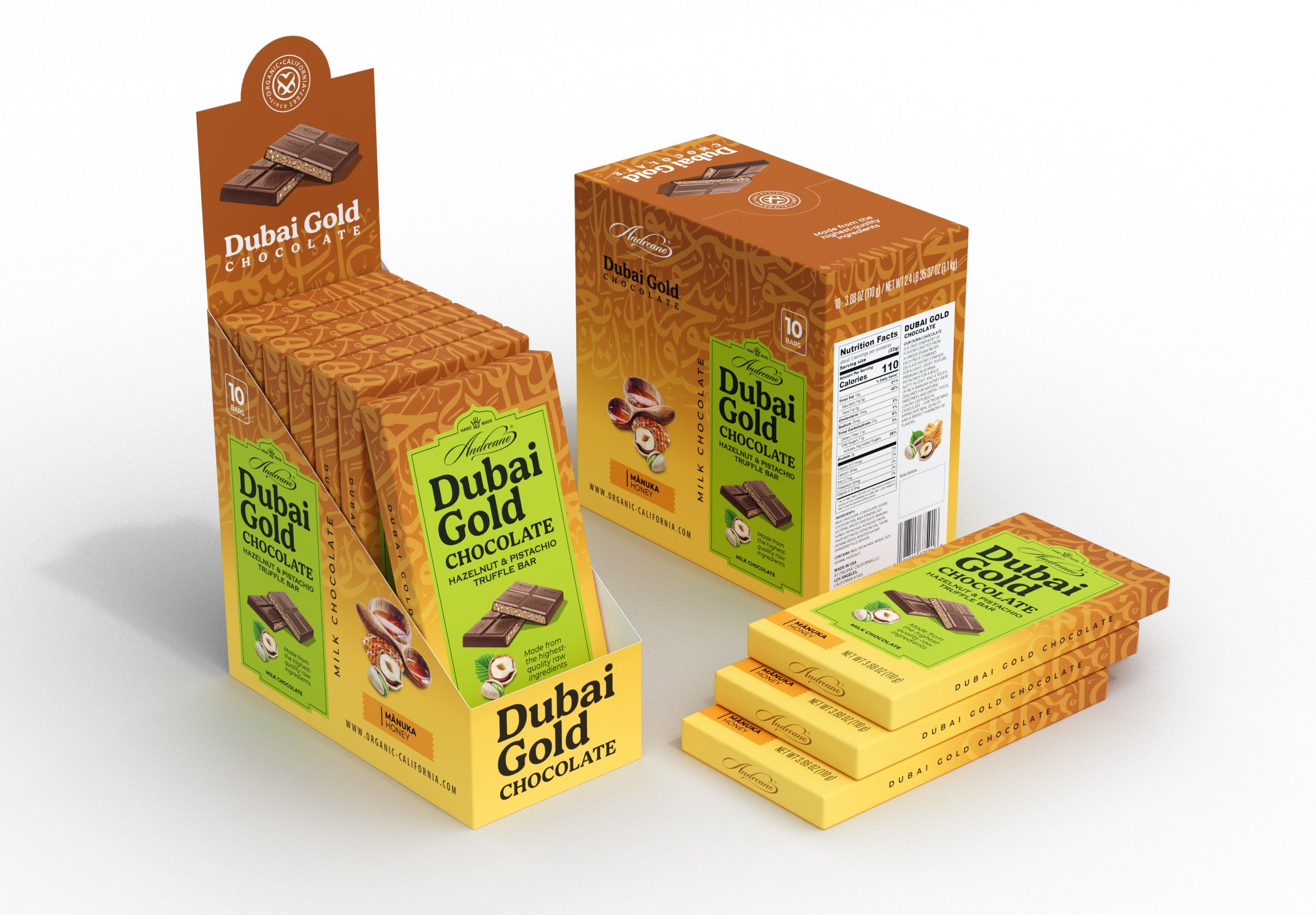 Dubai Gold Milk Chocolate Hazelnut & Pistachio Truffle Bar 10 - 110g / 1,1 kg